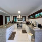 Maravilhosa Casa em condomínio bucólico - 5 suítes, 509m² de área construída de 1281m². Sala 3 ambientes, avarandada, escadas e janelas sob medida em madeira Sucupira. Ótima cozinha cheia de armários. Sala de jogos com sinuca, sala de ginástica, piscina com raia 32m², 2 saunas (Seca e vapor) com banheiro ao lado: 1 seca e outra a vapor, churrasqueira, lavanderia. 1º Pavimento: ampla sala com varanda, sala de estar, Lavabo, 1 suíte, escritório, copa-cozinha, despensa. 2º Pavimento com: 4 suítes, todas com closet e armários, todos os cômodos com armários planejados. A Suíte máster com hidromassagem. Casa de caseiro. 5 vagas de garagem, gerador de energia. Próximo praia da Barra. Portaria com controle de acesso 24h.